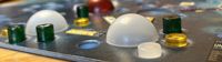 The idea I had at that time was based around the concept of a new resource called "data discs" that would allow players to obtain more cards under certain conditions and would allow them to build buildings on the reserved expansion sites. To expand the gameplay possibilities even further, I also came up with the idea of allowing players to spend this resource to play additional cards from their hand or to allow them to exchange resources from one type to another. Players would, however, be able to use this resource to "buy" only one additional action per turn so that it didn't become too powerful.