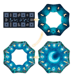 In the middle of the playing area is the central board where you draft your wisp tiles and choose your shapes to add into your forest. Before CGE, I had the board representing part of the forest, but early in development they made it circular and divided into different sections, allowing players to piece it together, making the game more variable.