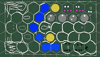 A screen capture of a Tabletop Simulator playtest from October 2023; this was an early concept for a Fortress Map that would be abandoned because it didn't provide the dynamic we were looking for