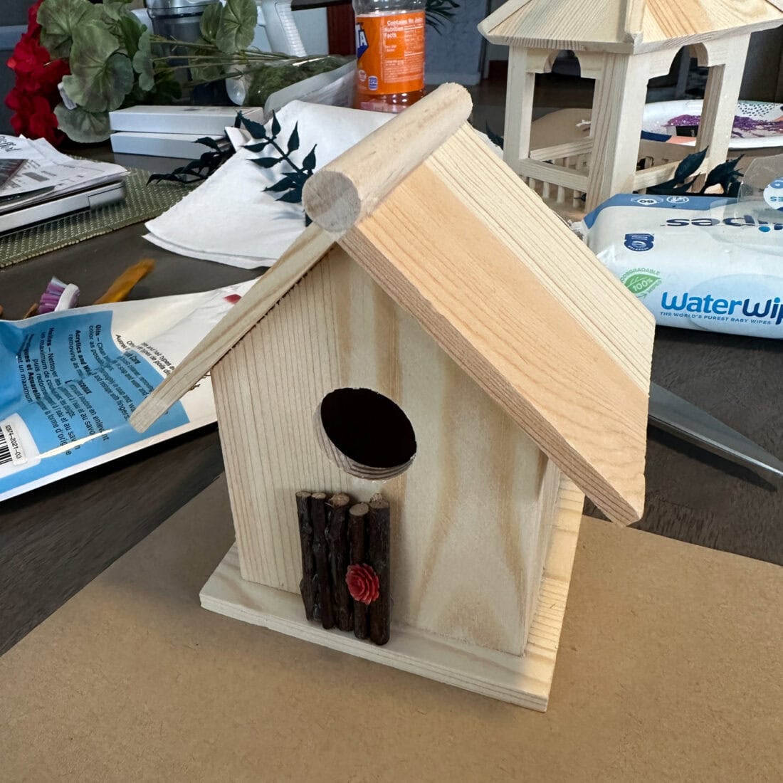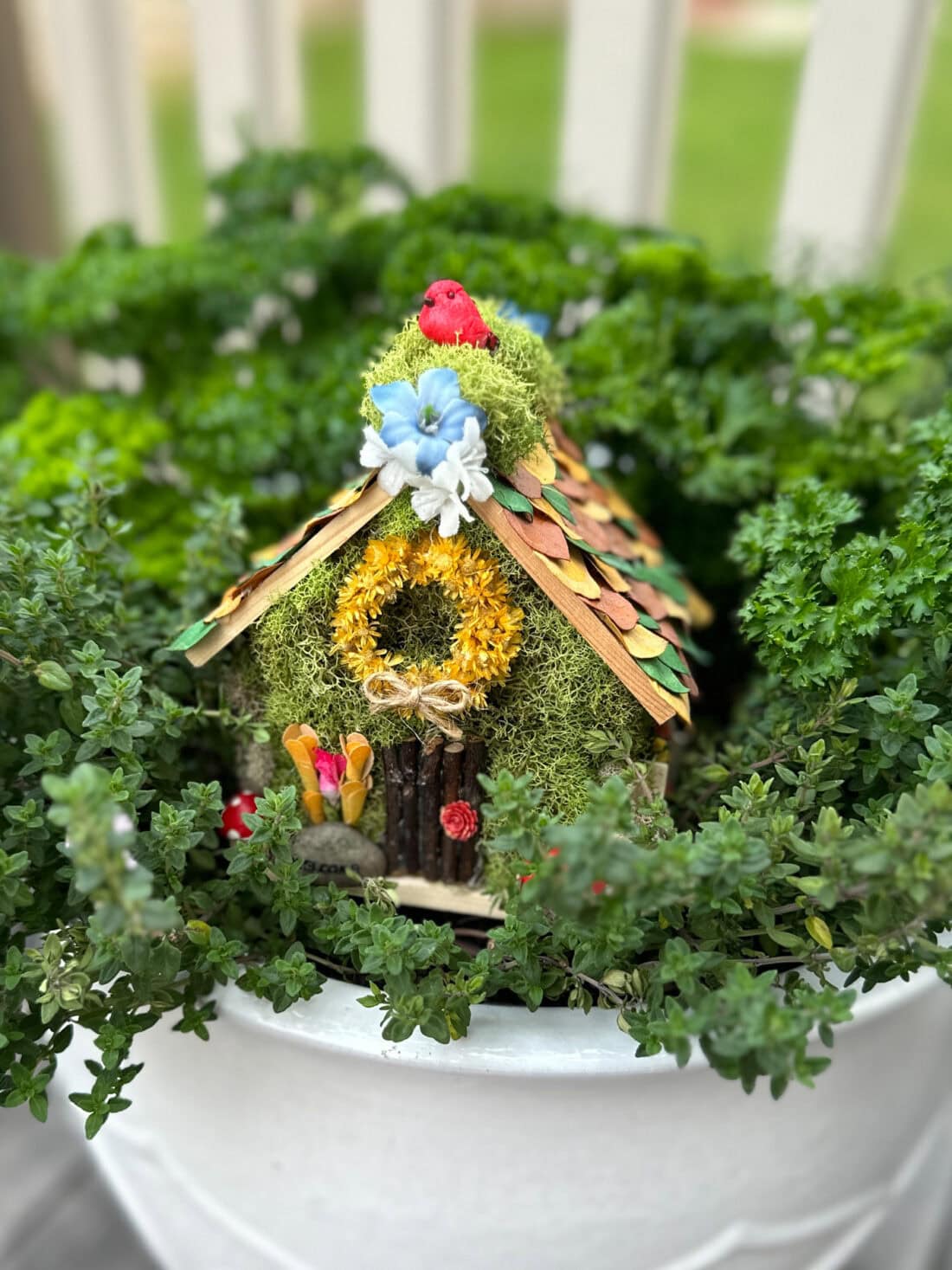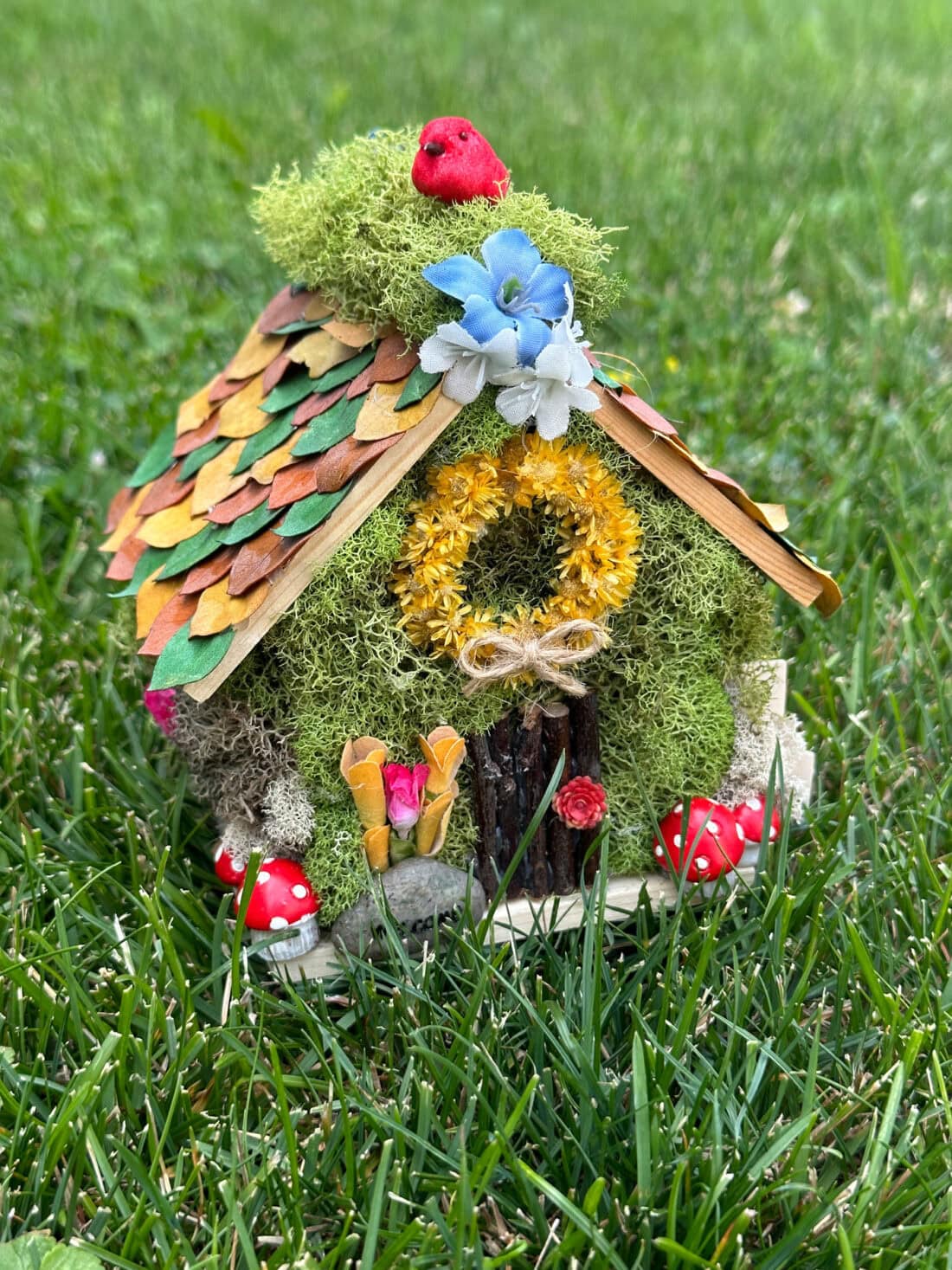 In the summer of 2023, I made this cute little fairy house for a friend of mine’s birthday. She loves miniature things and I had a little wooden birdhouse sitting in my craft room, so it just came together!