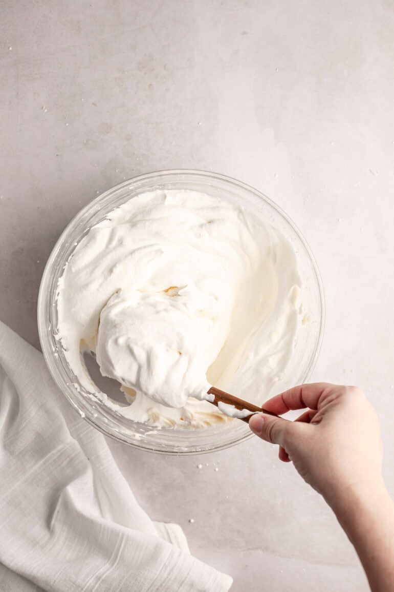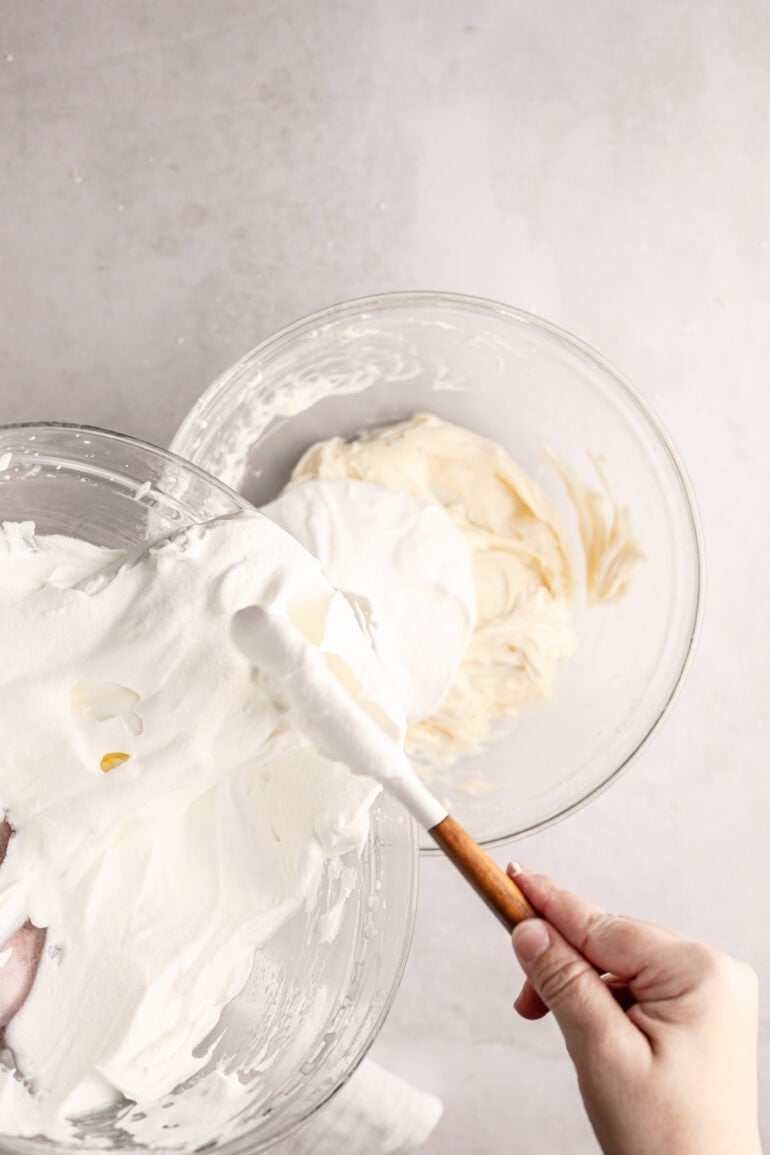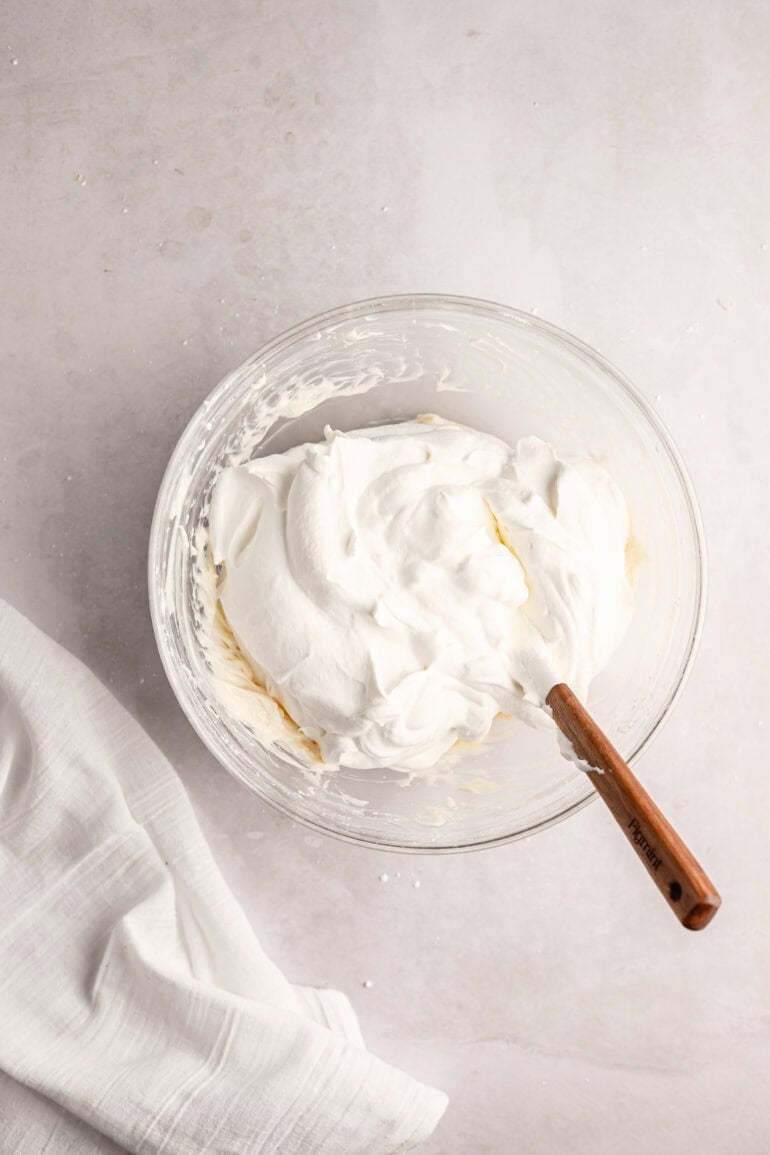 - Fold: Add the whipped cream to the cream cheese mixture and fold in until well combined.