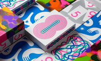 The first challenge was finding a design partner that had a track record of making bold, colorful packaging that looked equally great on a shelf as it does at the table — with bonus points if they had done this with tricky form factors, like games or other non book-y objects. We chatted with some fantastic agencies, but our clear favorite was SMLXL (formerly Pràctica). I knew them mostly from their packaging for Seth Rogan's weed and pottery (?) company Houseplant.